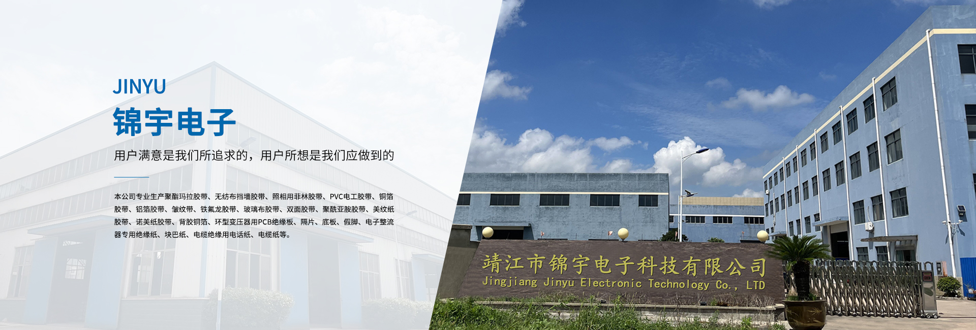 靖江市錦宇電子科技有限公司地處—靖江市。與上海、南京隔江相望,滬寧高速和京滬高速將蘇錫常及京廣連為一體,東依開放港口城市南通,西連新長鐵路,南臨長江萬噸船用碼頭,北接寧通一級高速公路,水陸交通便捷,經營環(huán)境優(yōu)良。 本公司專業生產聚酯瑪拉膠帶、無紡布擋墻膠帶、照相用菲林膠帶、PVC電工膠帶、銅箔膠帶、鋁箔膠帶、皺紋帶、鐵氟龍膠帶、玻璃布膠帶、雙面膠帶、聚酰亞胺膠帶、美紋紙膠帶、諾美紙膠帶、背膠銅箔、環(huán)型變壓器用PCB絕緣板、隔片、底板、假腳、電子整流器專用絕緣紙、塊巴紙、電纜絕緣用電話紙、電纜紙等。 公司依靠先進的科學管理,精良的生產裝備,合理的工藝設計,完善的檢測設備,以著“科技創新、質量為本、誠信服務”的信念。并嚴格貫徹ISO9001國際質量體系的程序和規(guī)格,為廣大用戶提供優(yōu)質的產品與滿意的服務。 多年來,公司本著“用戶滿意是我們所追求的,用戶所想是我們應做到的”的經營理念;“質量保障,價格合理,服務誠信”的企業宗旨。熱忱歡迎海內外各界人士、朋友前來洽談、合作,攜手共創輝煌的明天。